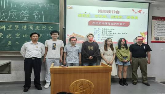 (通讯员:沈洁)2020年5月11日晚18:30,我院第98期“博闻读书会”暨党史宣讲专场第二期在流芳校区4111教室顺利举行。本次活动以“在历史中探寻党的生命力”为主题,围绕《中国共产党简史》展开讨论。本次参与宣讲专场的师生有我院院长曹胜亮教授,“博闻读书会”主持人李齐老师,马院全体研究生。本次读书会的五位主讲人为马克思主义学院研究生二年级的曹嗣睿、井源、秦帅、吴龙、闫玉茹。