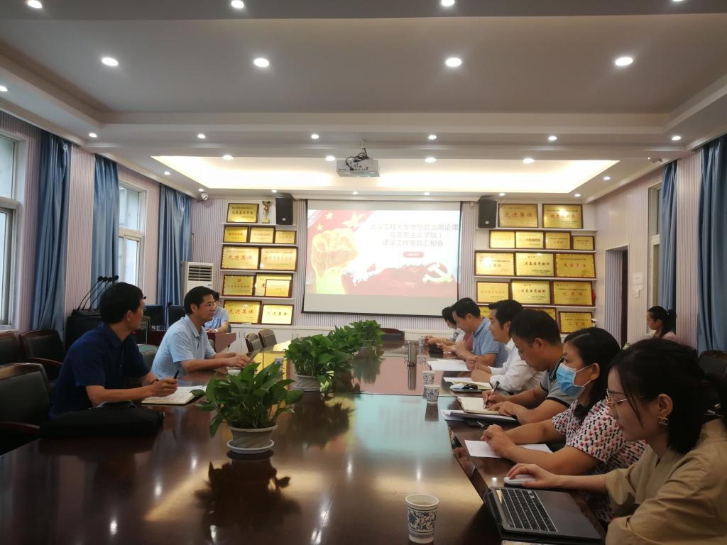 院长曹胜亮从学院的机构设置、师资队伍、学科建设、科学研究、人才培养、社会影响等方面进行了汇报。学院党委书记舒先林简要地汇报了党建引领学院工作思路和举措,其余各参会人员就学院发展与思政课程建设等方面提出了自己的意见和建议。