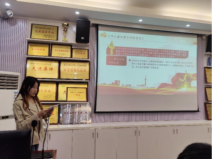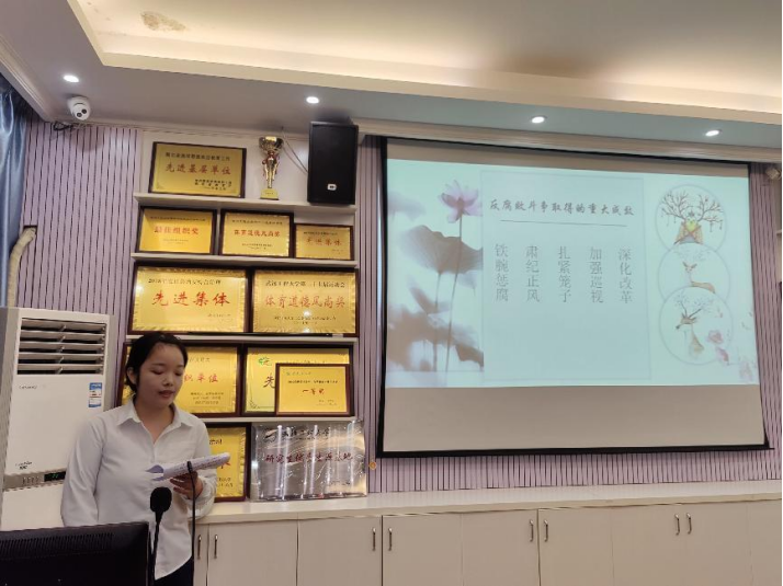 丁薇同学以“从百年党史汲取力量,争做廉洁自律大学生”为题,谈到我们大学生是社会未来的中坚力量,是顺利完成第二个百年奋斗目标、实现中华民族伟大复兴中国梦的希望。在党中央强力推动全面从严治党向纵深发展、营造风清气正的良好政治生态的新形势下,大学生廉洁教育至关重要。