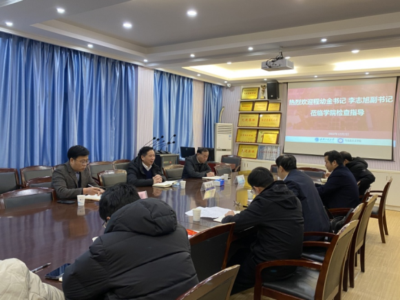 (通讯员蔡明广)12月2日上午,学校党委书记程幼金、副书记李志旭、宣传部副部长赵小硕赴马克思主义学院进行专题调研指导,对学院关于党的二十大精神学习宣讲及融入思政课教育教学工作进展情况进行检查指导。学院党委书记舒先林、院长曹胜亮、副书记陈俊、副院长常城以及教师代表参加会议。